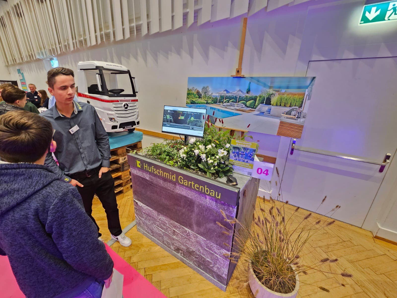 Wir haben an der originellen Palettenmesse im Casino Bremgarten vom 5. November 2025 teilgenommen. Es wurden 108 Lehrberufe von 48 verschiedenen lokalen und regionalen Firmen vorgestellt. An den verschiedenen Aussteller-Plätzen konnten sich Schülerinnen und Schüler über diverse Berufe informieren und sich mit den Betrieben vor Ort austauschen.